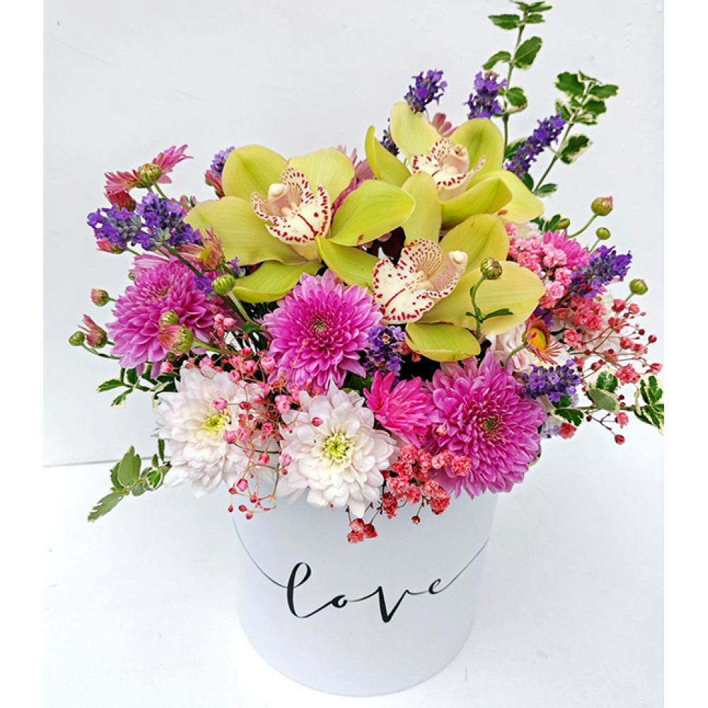 This stylish hat box arrangement features a luxurious blend of seasonal flowers and elegant orchids, creating a perfect harmony of color and texture. Designed to impress, it embodies sophistication and freshness, making it an ideal gift for any occasion. The chic box adds a modern touch, while the vibrant blooms fill the space with fragrance, beauty, and lasting emotion.